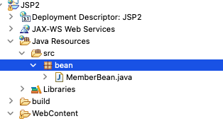 자바 빈은 Project Explorer창의 Java Resources 폴더가 보일것이다. 서로 다른 클래스에 있는 폴더에 접근(현재는 WebContent라는