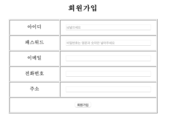 하나의 회원가입양식을 작성해서 데이터베이스에 저장한다.