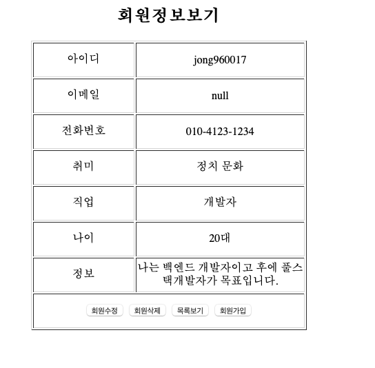 자 오늘은, 지난시간에 MemberInfo.jsp 까지 만들었다. 알다시피, MemberInfo.jsp는 사용자에