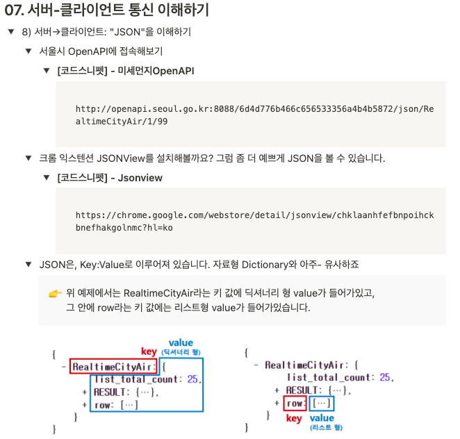 --> 위와 같이 미세먼지 api를 다운받아서 링크해보면 알아볼수 없는 문자들이 나오지만 그 문자들을 jsonview로 나타내면