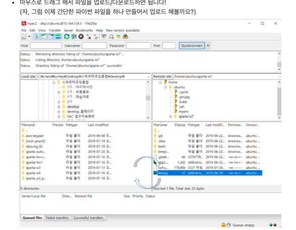 이 파일질라는 원격컴퓨터를 업로드, 및 다운로드 를 번갈아 하기 위함이다..